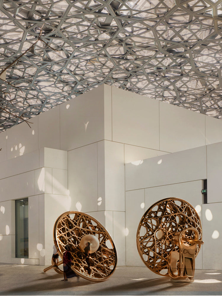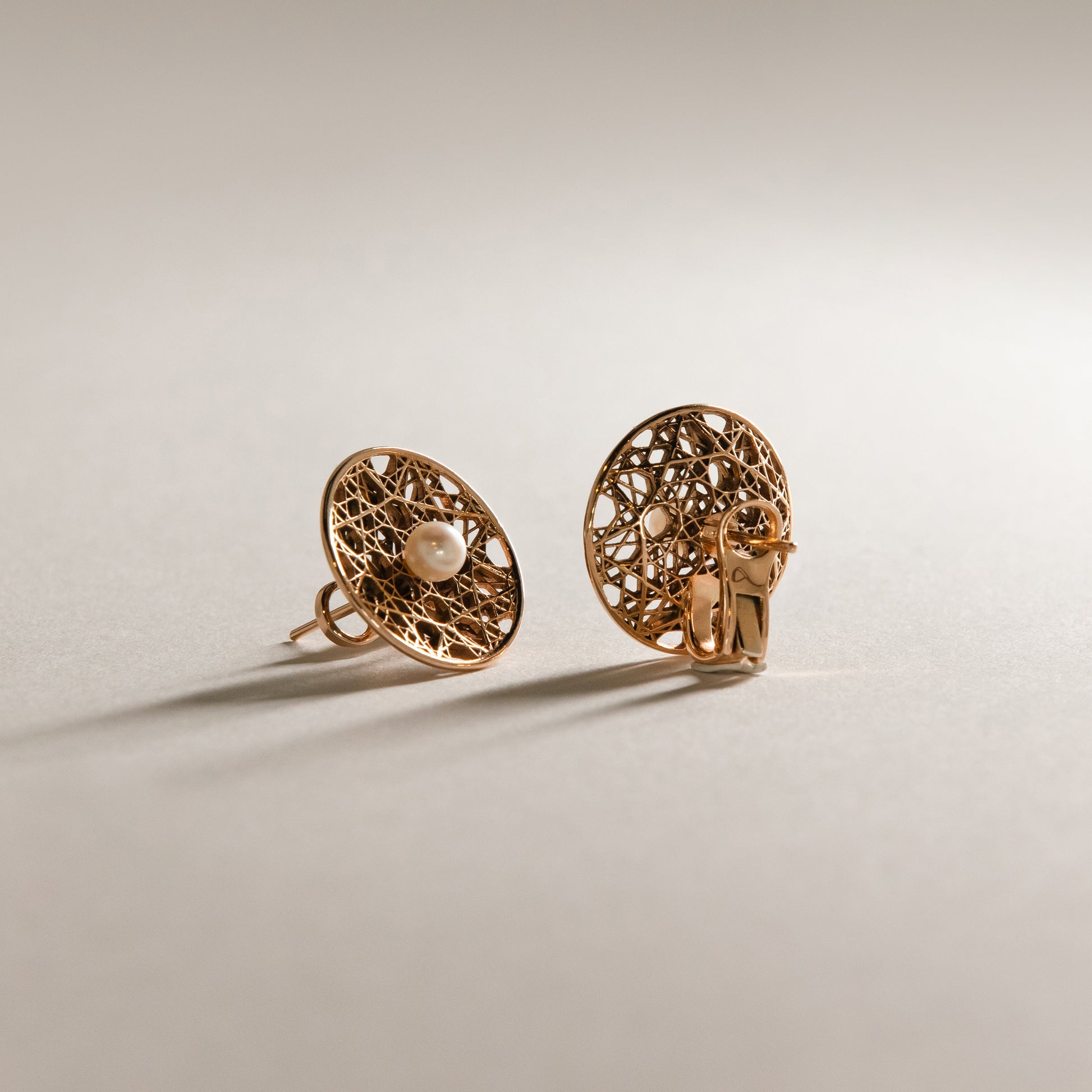 Inspired by the Louvres Museum in Abudhabi by Jean Nouvel. The earrings are delicately fabricated to reflect the the overlapping arabesque layers.